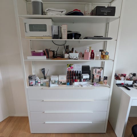 Reol i metal og træ med 4 hylder