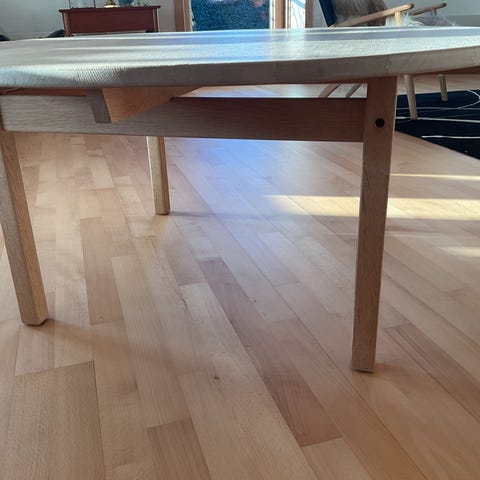 Sofabord i egetræ med synlige tapninger fra 70’erne