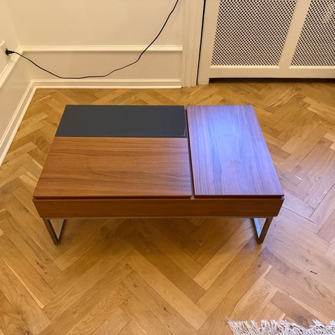 Sælger dette BoConcept sofabord i modellen Chiva i farven walnut. Der er 3 rum til opbevaring. Der er brugsspor når man kigger tæt på, derfor sælges det billigt, men det fungerer som det skal. Skal hentes i Stenløse.