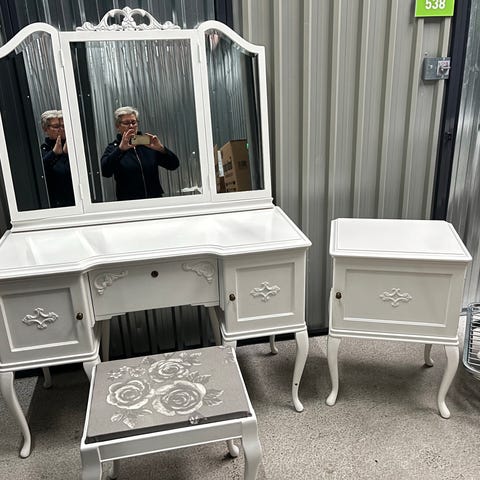 Charmerende og romantisk sminkebordssæt i klassisk vintage/fransk stil.