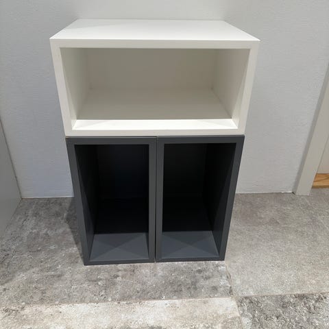 Stacked mini kasser med brugsspor og en smule farve afvigelse på den hvide.
