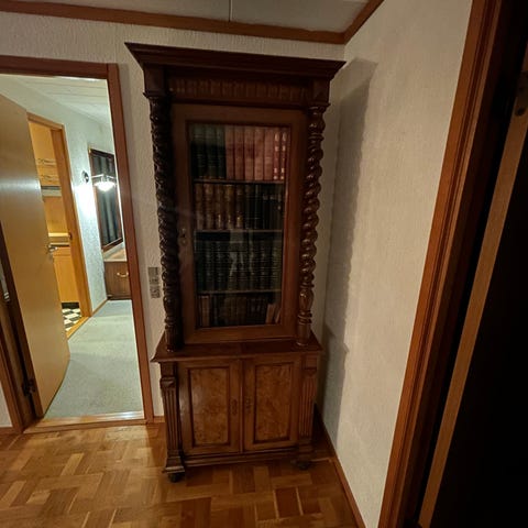 Ukendt mærke skab og hjørneskab i udskåret træ brun