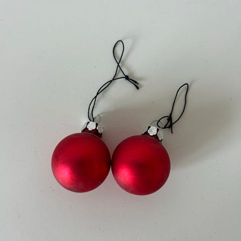 juletræ, grønne, 6 stk, kuglens længde: 6 cm, omkreds: 19 cm, vejer i alt: 63 gram.