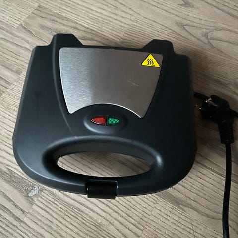 OBH Nordica Crispy sandwichmaker i sort. Apparatet er beregnet til tilberedning af varme sandwiches. Enheden har plads til to trekantede sandwiches ad gangen og har non-stick belægning på pladerne, hvilket gør rengøring lettere. Sandwichmaskinen er kompakt og kan opbevares i et almindeligt køkkenskab. Velegnet til daglig brug i køkkenet til hurtig tilberedning af toast og sandwiches.