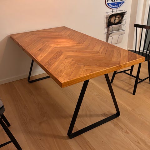 Dette eksklusive sildebensbord er snedker håndlavet, med Klassisk designtradition og et moderne og stilrent udtryk. Bordpladen er udført i massivt træ eg sildeben (70x500x21mm) fuldlimet ovenpå en 21mm mdf plade, hvor det smukke sildebensmønster fremhæver træets naturlige struktur og tidsløse symmetri. Bordet er et stykke håndværk, fremstillet med stor omhu og sans for detaljen. Overfladen håndslibes og olieres med Rubio Monocoat Oil Plus 2C for at give bordpladen den perfekte, holdbare finish. Resultatet er et elegant og robust bord, der både udstråler kvalitet og naturlig skønhed, bordet er inkl. hay loop bordben.