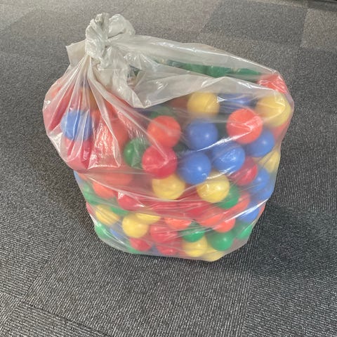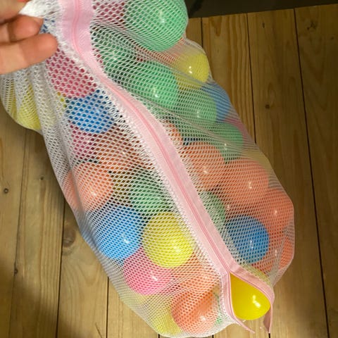 IKEA legebold sæt i plast med flerfarvede bolde. Sættet består af plastbolde i forskellige farver, velegnet til boldbassin, legetelt eller leg på gulv. Egnet til børn under opsyn af en voksen. Kan opbevares i de medfølgende gennemsigtige tasker med lynlås og hank.