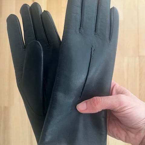 Handmade leather & suede gloves - length of longest finger 8 cm (see picture). Lined with soft linen (Brand new, just without tags)