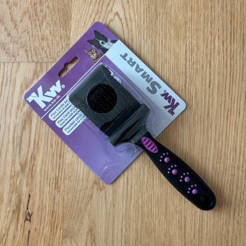 "Denne børste har pigge på begge sider. Piggene har et lille knæk der gør karten yderst effektiv til udredning af filtre i pelsen.
