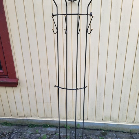boldholder stativ i sort metal med tre holdere til opbevaring af bolde. Stativet er fritstående og egner sig til organisering af bolde i fx entré, bryggers, børneværelse eller garage. Designet gør det muligt at placere bolde oven på hinanden i højden for at spare gulvplads.