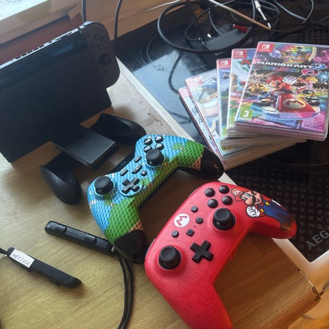 Sælger min Nintendo Switch som en samlet pakke – rigtig god til sofa-multiplayer.