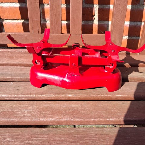 Mekanisk bordvægt i metal. Bilateral vægt / balancevægt. Vægten har en rund vejeplade foroven og synligt mekanisk system med buede skalaer i kiloangivelse. Foden er støbt med navnet Columbus. Velegnet som funktionel vægt eller som dekorativ, teknisk præget genstand i køkken, butik eller indretning. Med patina og brugsspor. Uoriginal vejeplade. Kræver kalibrering med et vægtlod for at ramme nul.