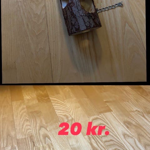 Der er 2 træhuse. Det ene er der gnavet lidt i taget, se foto.