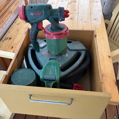 Bosch PFS 5000 E malersprøjte med 1200W motor. Systemet består af baseenhed med bærehåndtag, slange og sprøjtepistol. Velegnet til sprøjtning af maling og lak på forskellige overflader som vægge, træværk og møbler. Leveres i original kasse med quick start guide og tilbehør som vist på billederne.