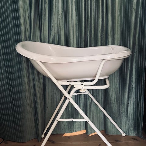 Baby bath tub with stand for babies up to 6 months.