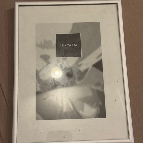 1 stk. skifteramme med alu-kant 50 x 70 cm. Glas i stykker i højre hjørne.