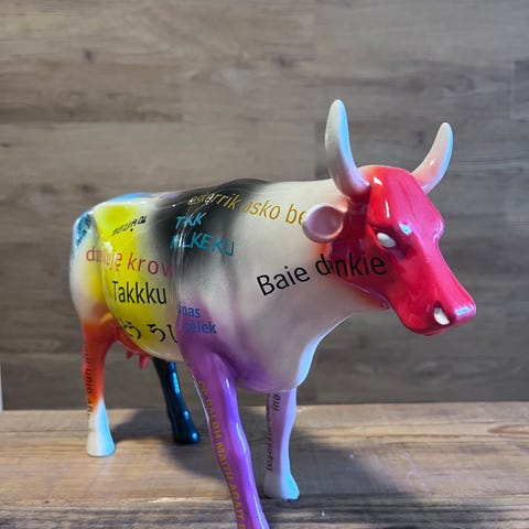 Sælger denne ikoniske og meget populære CowParade-figur i den store model. Der er tale om designet "Musselmalet", som blev skabt af kunstneren Ronald Burns i forbindelse med CowParade Copenhagen i 2007.