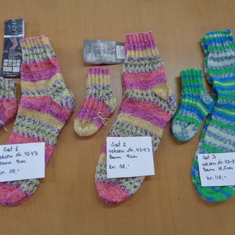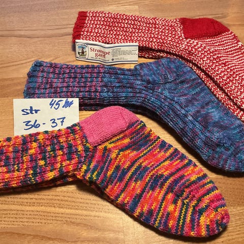 Hold små og store fusser varme. Hjemmestrikkede strømper til baby, børn og voksne. Kun strikket i de bedste garner i uld i blandede farver og mønstre. Flere forskellige størrelser og længder.