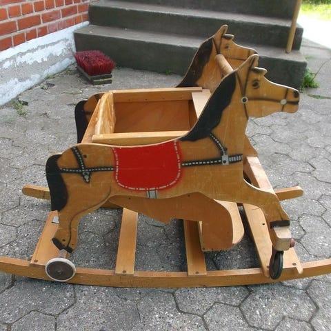 Gammel gåvogn / gyngehest fra Brørup Barnepige fra 1940’erne