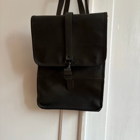 Rains unisex rygsæk i grøn. Tasken har et enkelt hovedrum med klaplukning og rem. Velegnet som hverdags- eller pendlerrygsæk, med plads til computer og pas i et gemt rum på ryggen.
