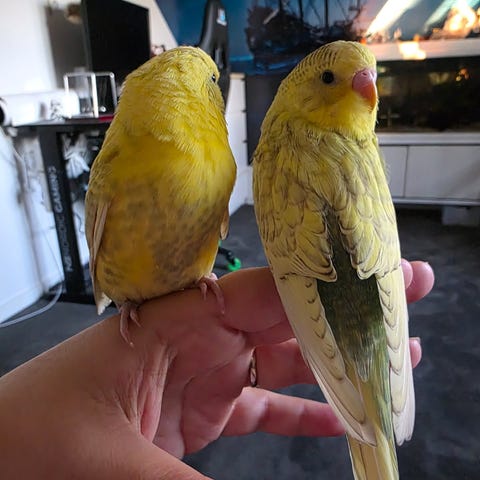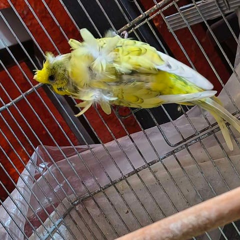 Når buret åbnes, flyver den selv hen til lågen og vil ud – og sætter sig i hånden. Den er utrolig kælen og elsker at blive nusset 🥰
