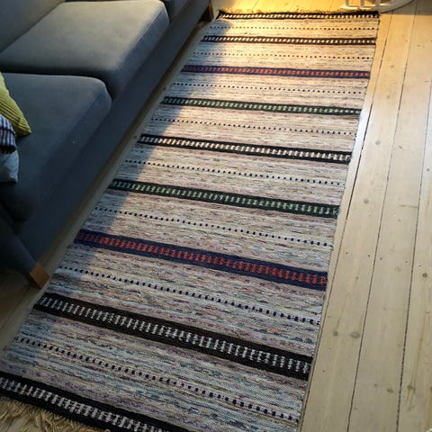 Håndvævet svensk kludetæppe (trasmatta)