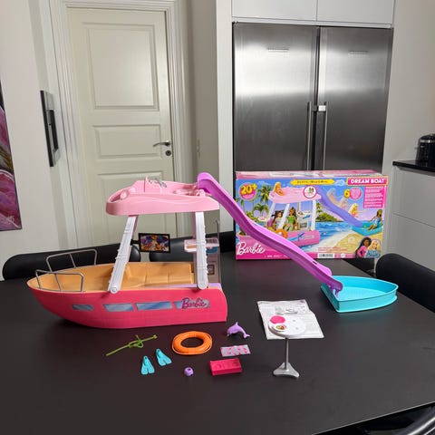 Barbie strandtilbehør legetøjssæt med båd, surfbræt og liggestole