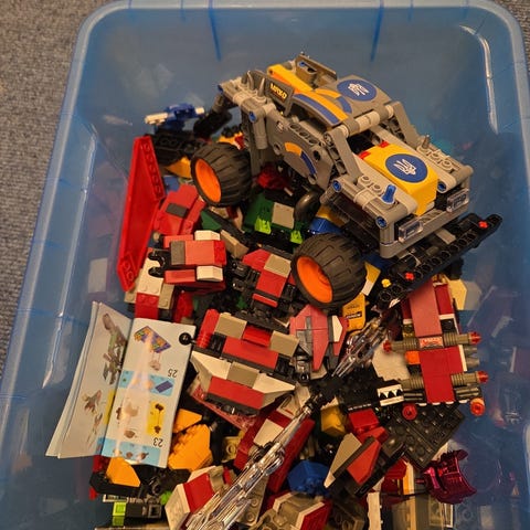 Egnet til fri byggeleg, udvidelse af eksisterende LEGO-samling eller reservedele til ældre sæt. Præcist antal klodser og specifikke sæt er ikke angivet.