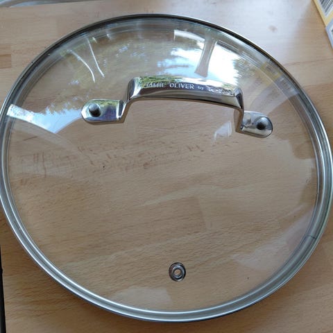 Rustfri 18/10 låg af model Jamie Oliver låg mål l 35 cm b 29 cm højde 5 cm alle mål er udvendige mål.