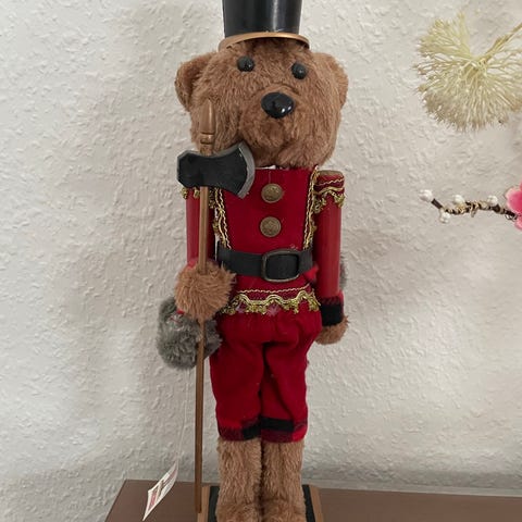 Nøddeknækker bjørnekonge med kappe og gaver