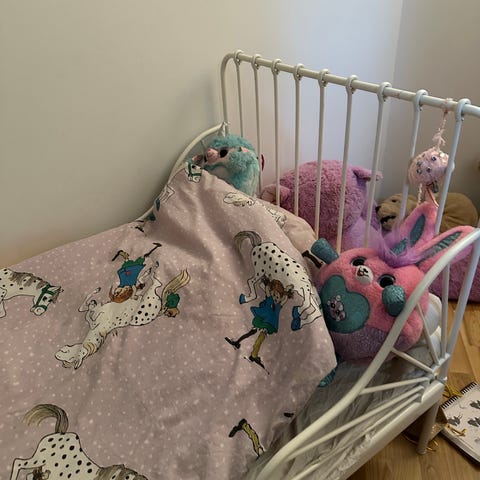 IKEA juniorseng blå træ kom med bud