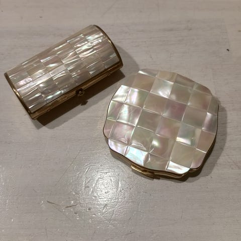 Sølv pudderdåse og Læbestift i 830s sølv
