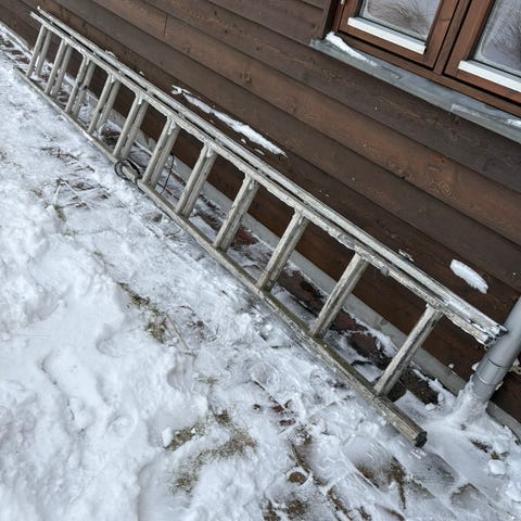 hver del af stigen måler 3,5 m. Altså 7 m i hel længde.
