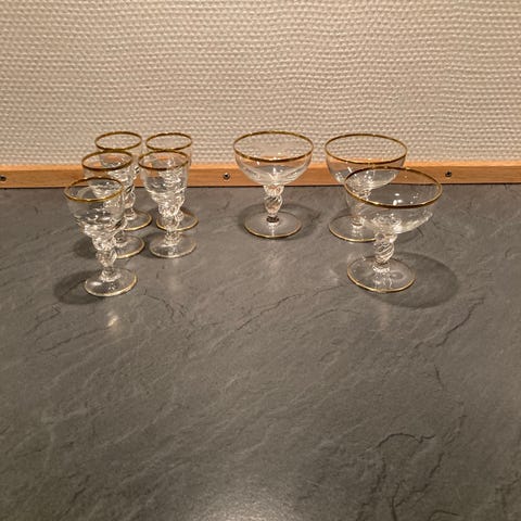 Sælges samlet for 100 kr (ca 17 kr pr glas)