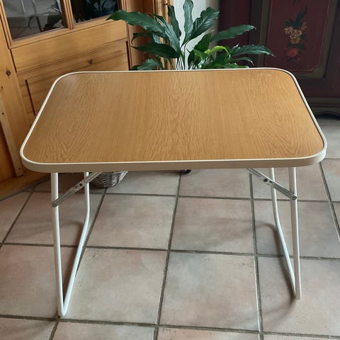 Charmerende og smukt patineret gammelt træ campingbord. 120 cm x 90 cm og 72 cm højt. Nemt at slå sammen og op igen.