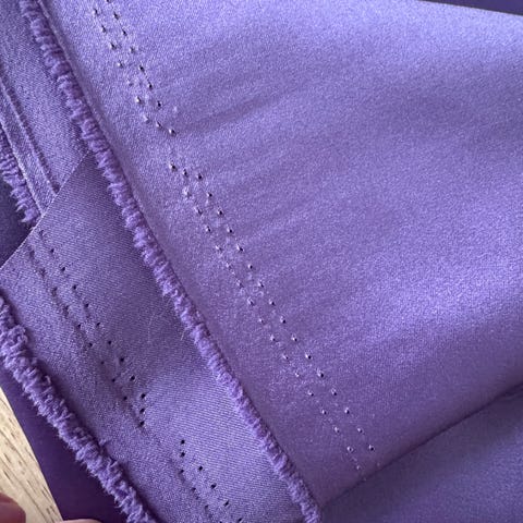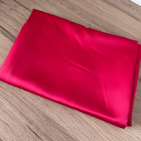 Aubergine / bordeaux partysatin - 110 x 145. Der følger mere med, men de 110 cm er i fuld bredde.