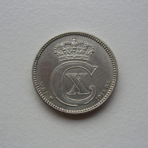 Ualmindelig flot 25 øre 1917,rigtig god årgang, sølv