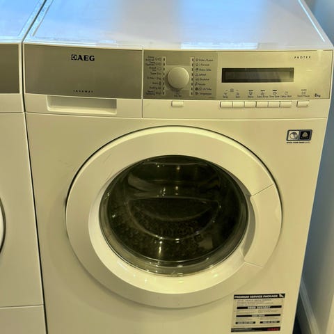 AEG frontbetjent vaskemaskine og tørretumbler i hvid. 6 år gammelt. Virker begge dele. Kan hente lørdag eller søndag d.28/29/2