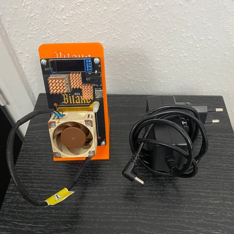 Bitaxe Gamma 601 Standard bitcoin miner til solo-mining af bitcoin. Enheden har en hashrate på ca. 1,2 TH/s og et strømforbrug på omkring 18W. Enheden leveres med køleblæser, holder og strøm-/tilslutningskabel som vist på billederne. Velegnet som kompakt miner til brug derhjemme eller til test og udvikling af mining-relaterede projekter.