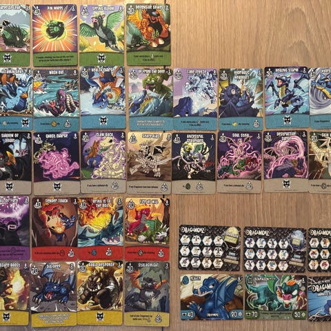 Min voksne søn sælger osse disse 79 Dinosaur King Trading Card med orginale plastik lommer til.
