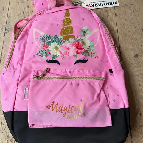 Valiant skoletaske rygsæk i lyserød med enhjørningemotiv og stjernemønster. Rygsækken har et stort hovedrum med indvendig lomme samt en mindre lynlåslomme foran. Justerbare, polstrede skulderstropper og polstret ryg for øget komfort. Nederst er der sort bund for ekstra slidstyrke. Velegnet som skoletaske eller til fritidsbrug for børn.