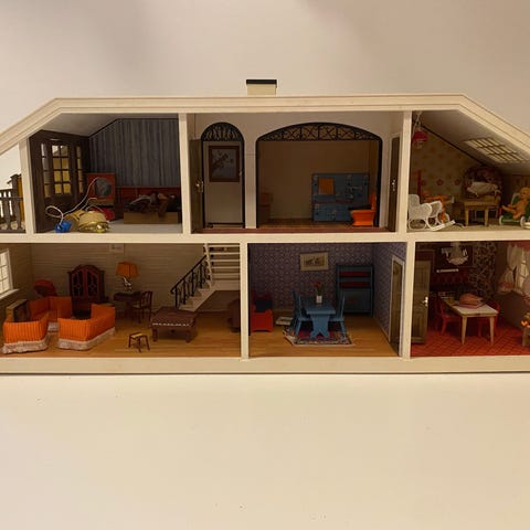 Lundby vintage hukkehus med el og fine antikke møbler