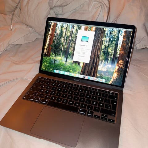 Apple MacBook Air bærbar computer i farven Starlight, som minder om en tonet guldfarve. Købt i Elgiganten d 28. decemeber 2025 så den er 1,5 måned gamle. Computeren har aldrig været ude omkring, men er blevet brugt herhjemme. Derfor er den i en helt perfekt stand.