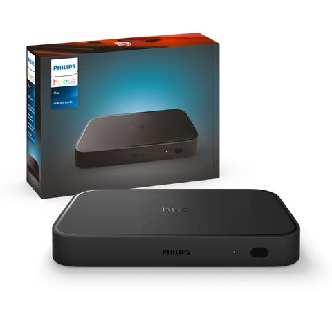Philips Hue HDMI sync box i sort. Enheden har flere HDMI-indgange og -udgange samt strømforsyning medfølgende. Bruges til at synkronisere Philips Hue belysning med billedindhold fra HDMI-kilder som f.eks. tv-bokse, spillekonsoller eller medieafspillere. Velegnet til opsætninger, hvor lys skal følge indholdet på skærmen for en mere integreret lysstyring med Philips Hue systemet. Købt fra Ny af d 1-10-2025 for 2550kr