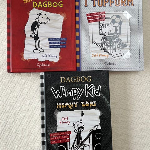 Jeff Kinney Wimpy Kid og Diary of an Awesome Friendly Kid bogsæt. Sættet består af tre bøger: "Wimpy Kid – ikke en dagbog" (dansk udgave), "Wimpy Kid – Rejsefeber" (dansk udgave) og "Diary of an Awesome Friendly Kid – Rowley Jefferson" (engelsk udgave). Bøgerne er illustrerede romaner i hardback med sort-hvide tegninger og tekst, velegnet til børn og unge læsere, der kan lide humoristiske dagbogsfortællinger og serielæsning.