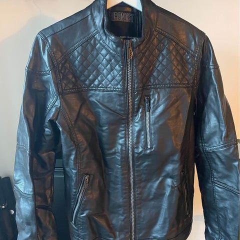 Sort læder jakke, håndsyet i Tyrkiet
