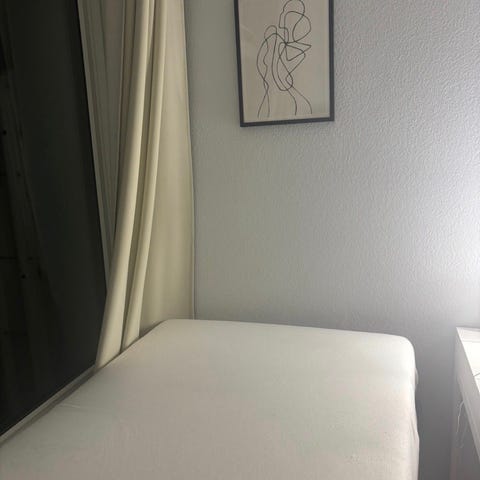 Fejler ikke noget, andet end lidt pletter hist og pist på topmadras og seng