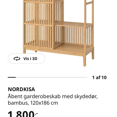 IKEA Nordkisa åbent skab i bambus. Skabet er i god stand, men har cirka 5 år på bagen. Hurtig afhentning prioriteres.