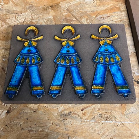 Knabstrup relief fiske kone 17x19 cm lille afslag i hjørnet