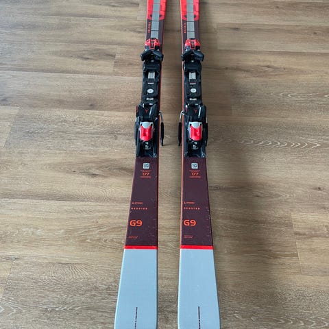 FIS godkendte atomic Redster G9 storslalom ski i længde 193 cm. Skienes har en radius 30m og kanten har en radius på 88*. Monteret med Atomic X19 bindinger.