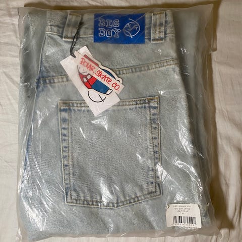 Fede skaterbukser fra Big Boy Polar til herre i størrelse XS. Ikonisk udgået model i en fed brun farve.